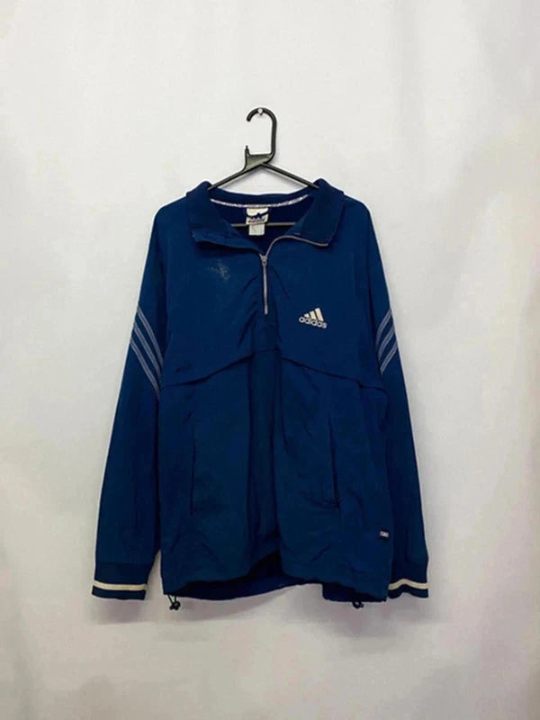 Quarter zip fastening White embroidered Adidas logo on chest Signature 3-stripe detail on sleeves Two front pockets Ribbed cuffs with striped trim