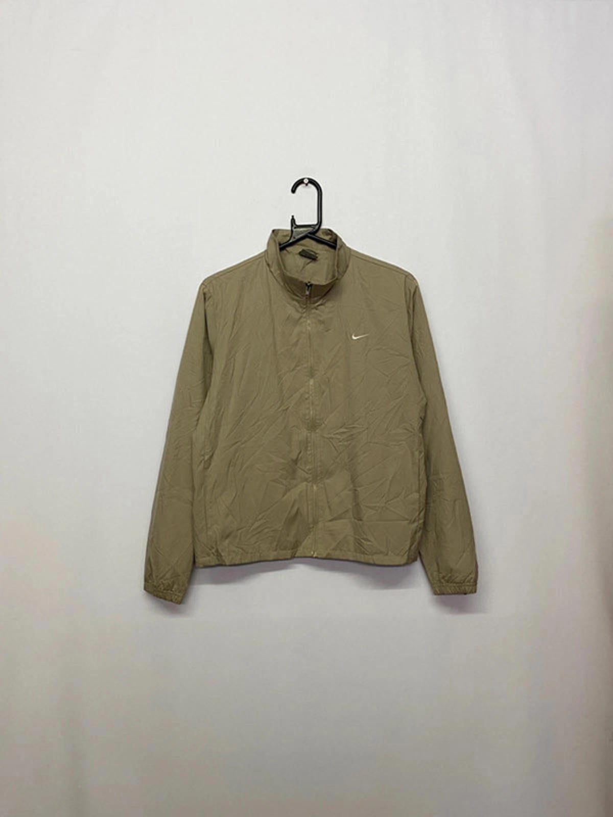 Minimalist and versatile Nike windbreaker jacket in a neutral beige/tan colour.