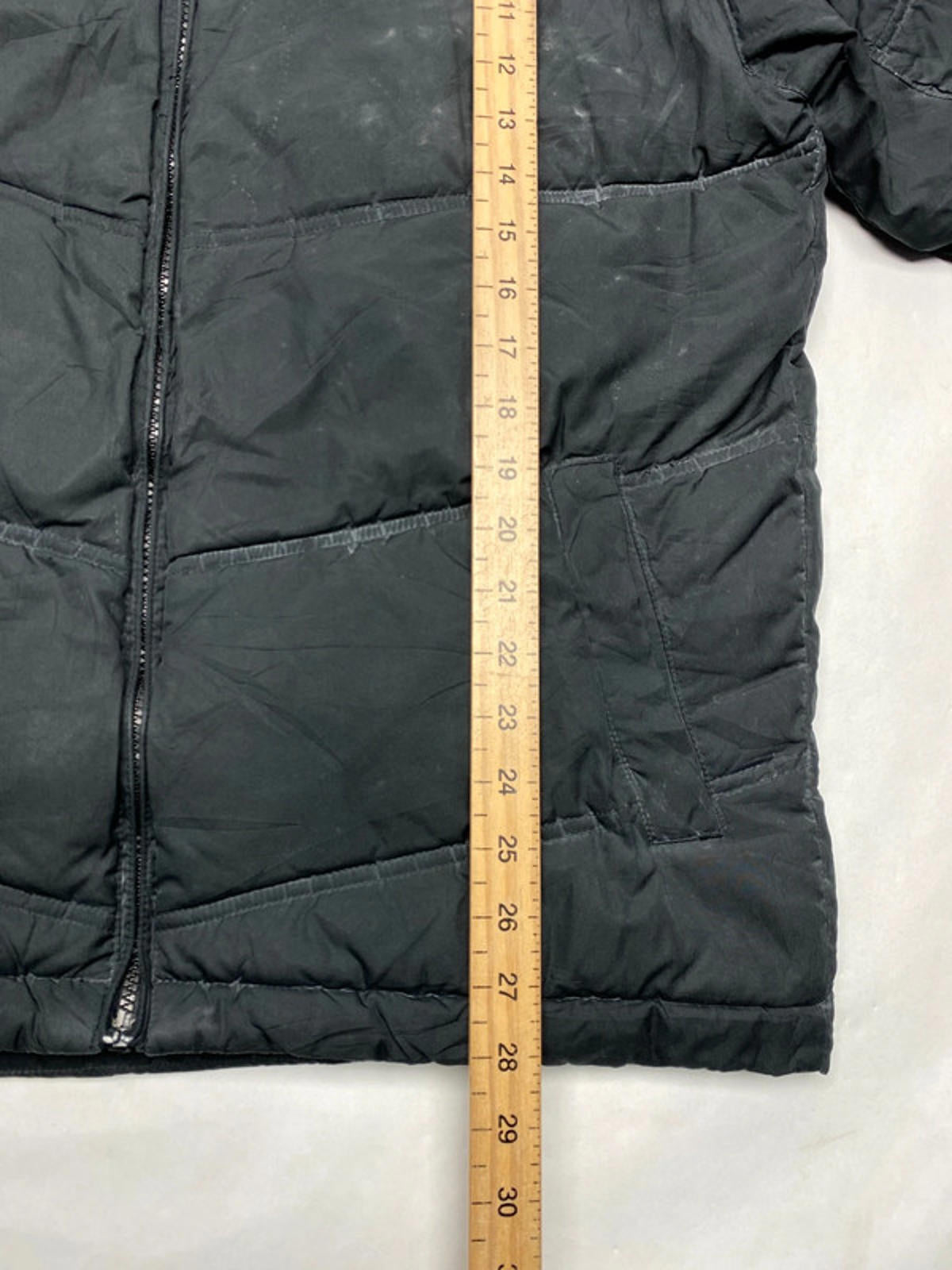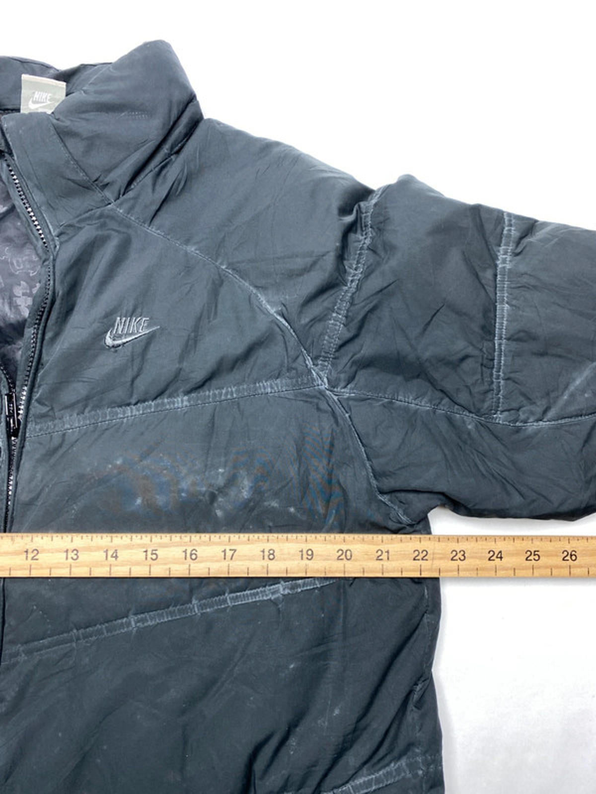 Warm and lightweight black Nike puffer jacket. Full-zip front, two side pockets, and a high collar for extra warmth. Subtle Nike swoosh logo on the chest.