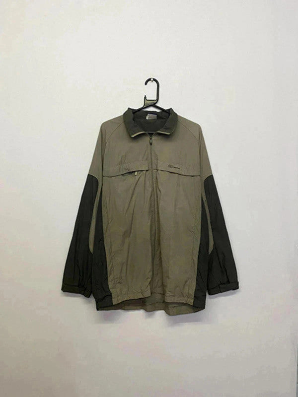 Retro Reebok lightweight jacket in a two-tone olive and black colorway. Features a zip-up front, chest pockets with concealed zippers, and embroidered Reebok logo. Relaxed fit with elasticated cuffs and hem. Great for layering or casual streetwear styling.