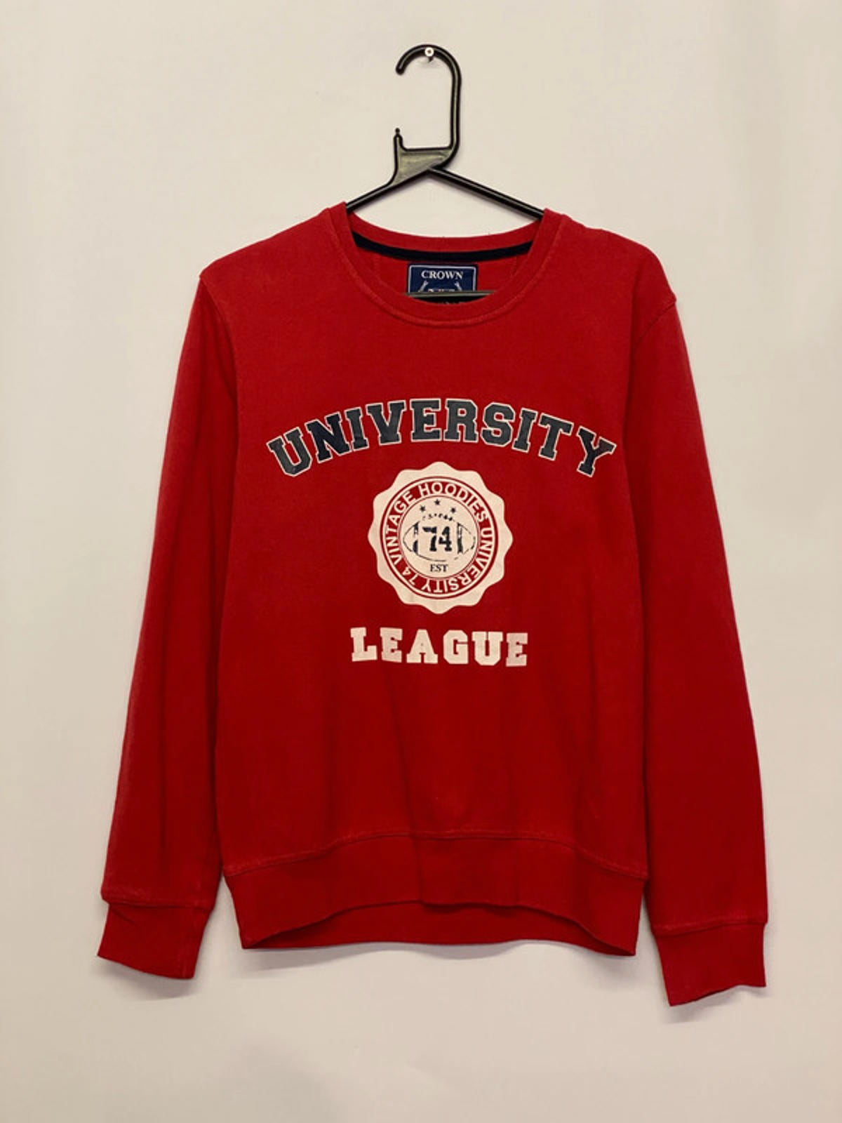 Crown brand sweatshirt featuring a bold University League collegiate print