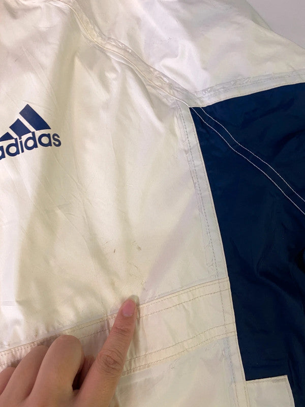Brand: Adidas Size: Men’s M (see label) Colour: Cream with navy accents Material: 100% nylon