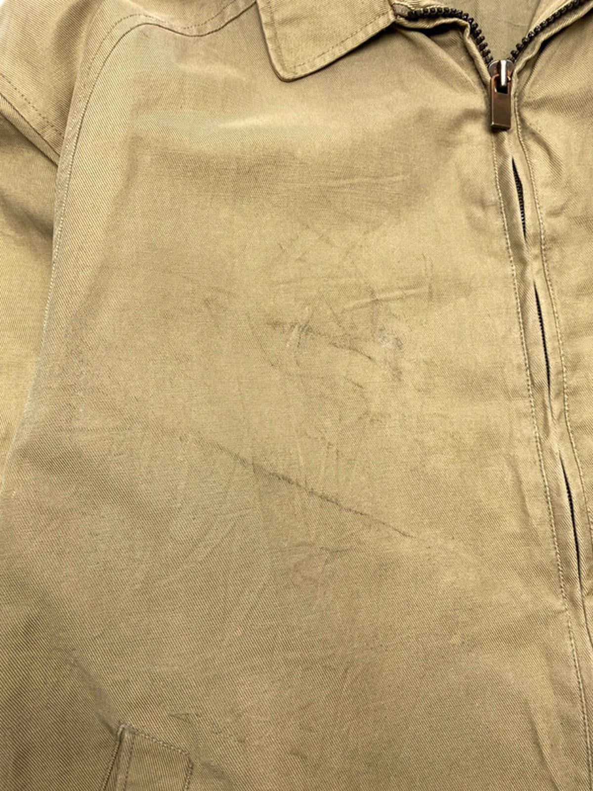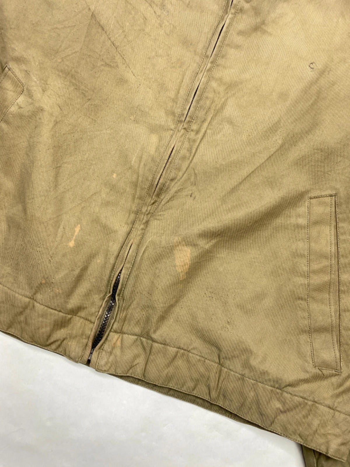 Classic Dockers full-zip Harrington-style jacket in a timeless khaki beige tone. Features a collared design, two side pockets, and button cuffs. Made from sturdy cotton twill material — ideal for layering in spring or autumn. Size: Men’s XL Made in China Condition: Good vintage condition – shows light marks and minor wear as seen in photos, adding to the vintage character.