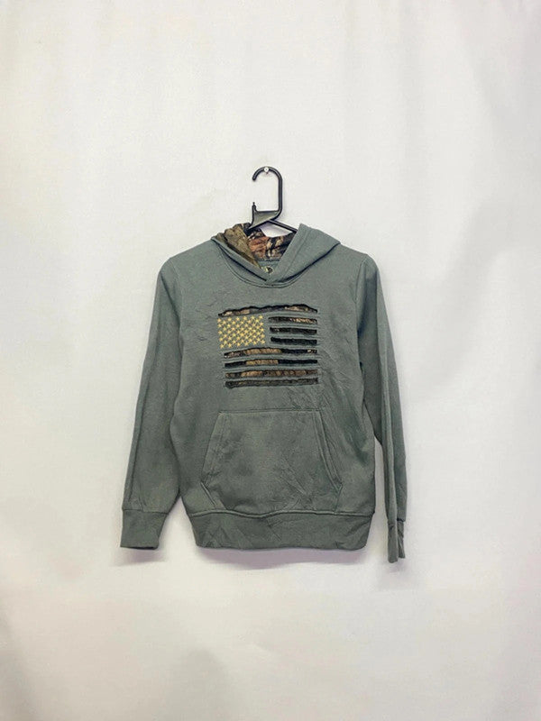 Size: 14 (Youth XL / approx. 13–14Y) Colour: Olive green with camo detailing Material: 100% polyester