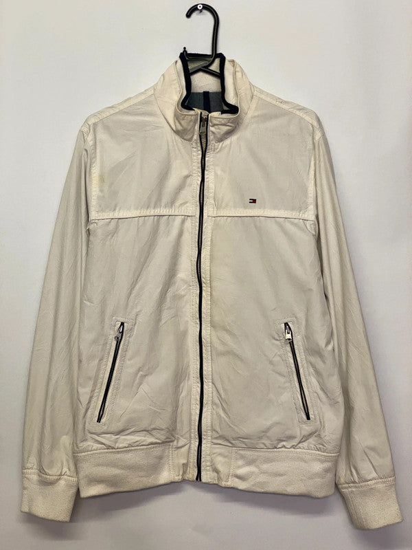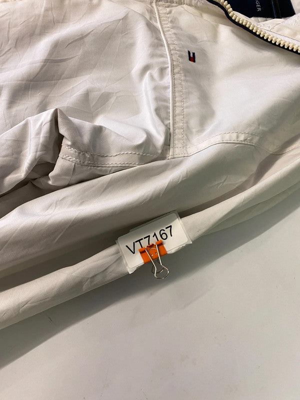 Brand: Tommy Hilfiger Size: Tag not shown (fits approx. Men’s M/L – please check measurements) Colour: White with black trim Material: Likely cotton blend with polyester lining (no composition label visible)