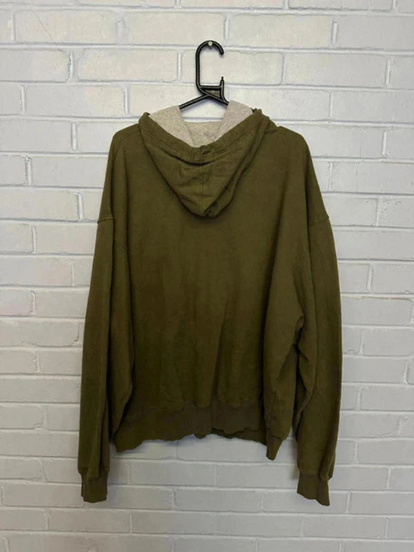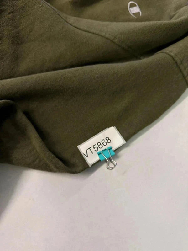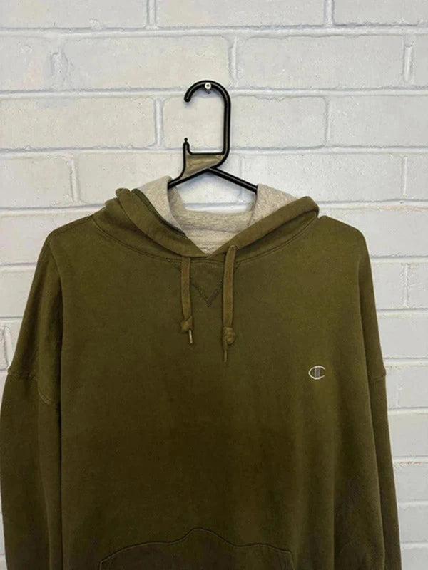 Vintage Champion Hoodie XXL Olive Green Pullover Embroidered Logo USA Made