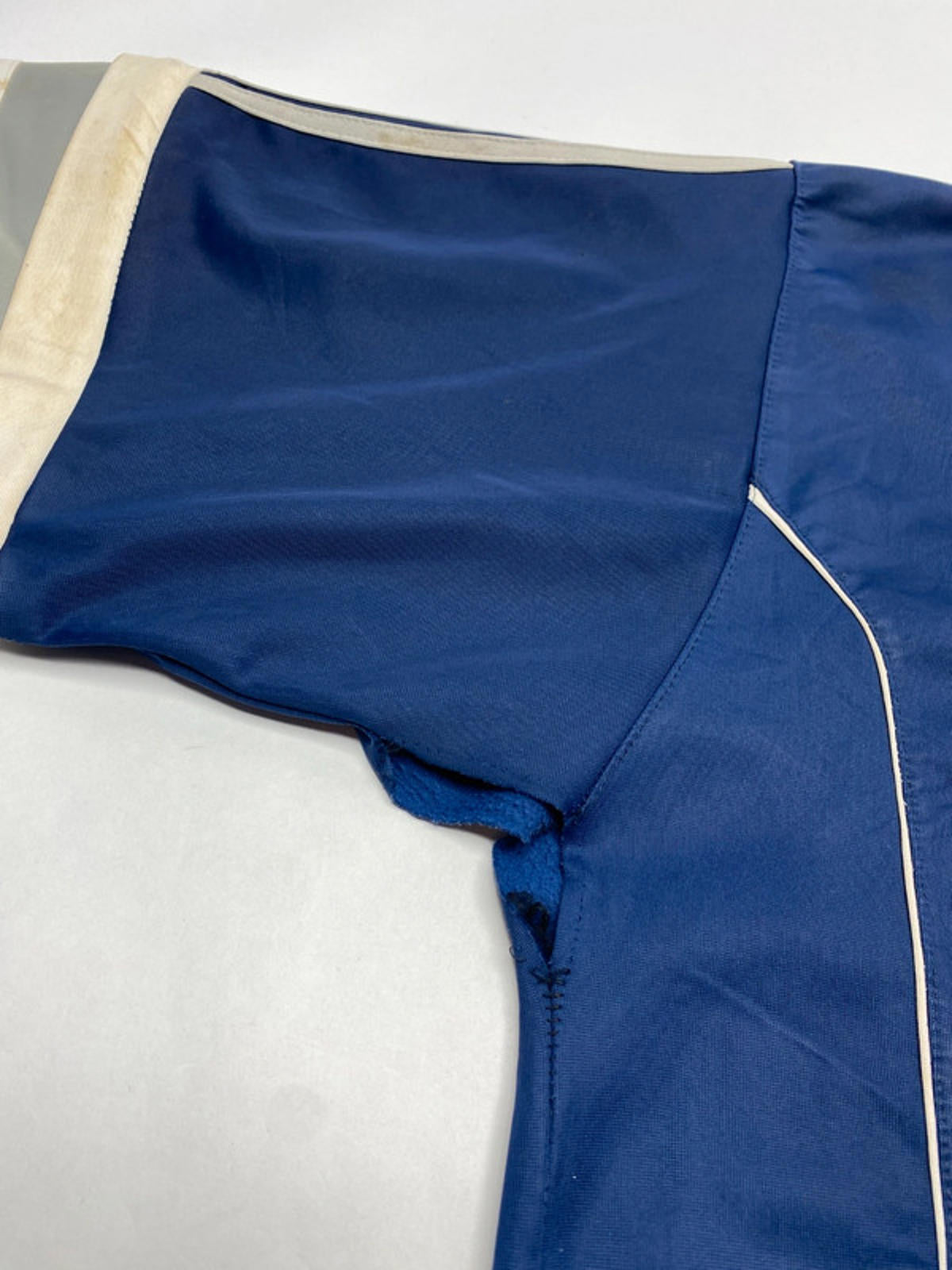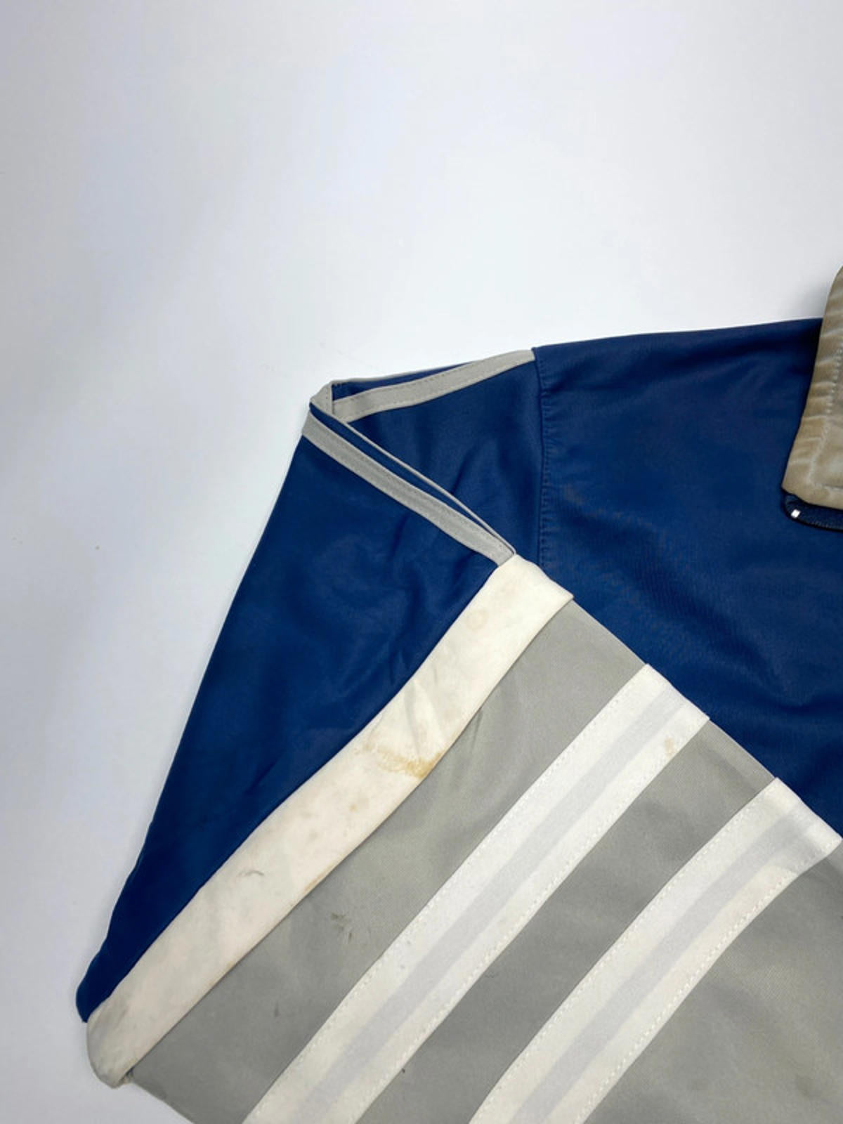 Classic navy blue base with contrasting grey 3-stripe sleeve and side detailing