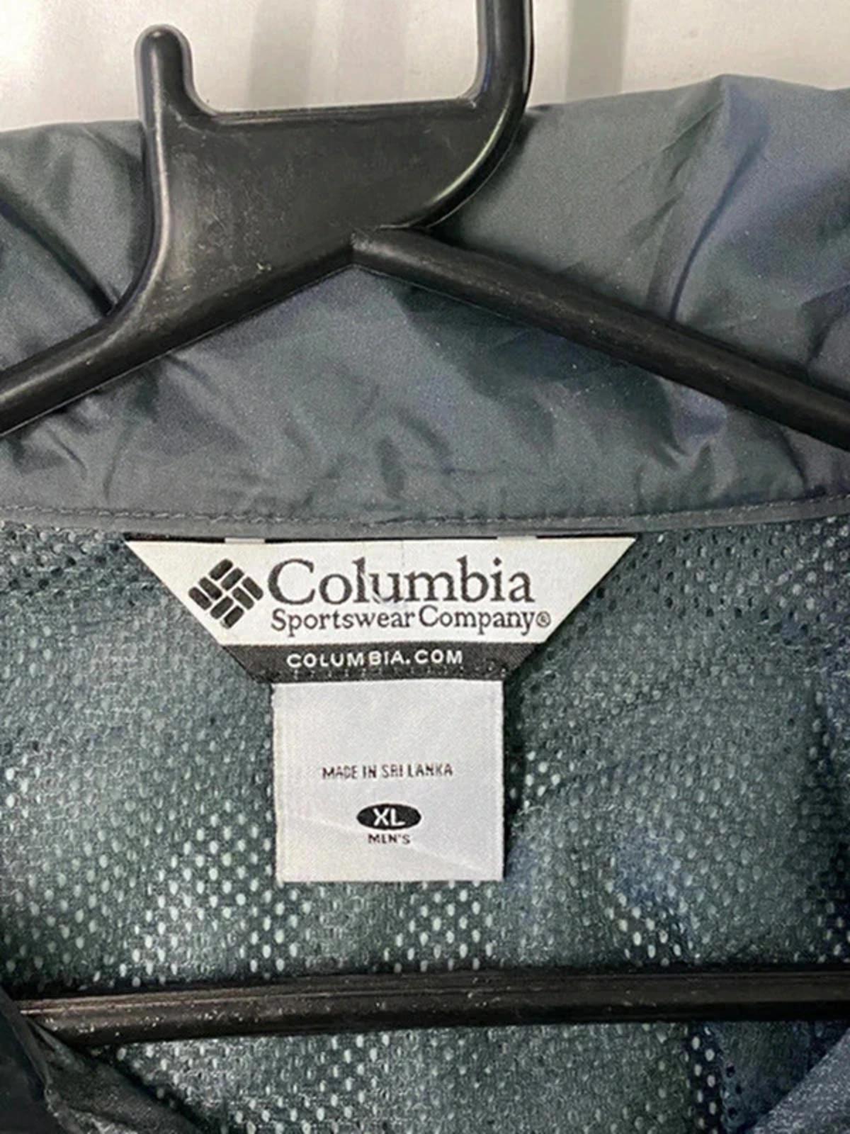 Lightweight and durable Columbia men's windbreaker jacket in a two-tone beige and dark green colour scheme. Features a front zipper closure, stand collar for added protection against wind, and elastic cuffs. Ideal for outdoor activities and casual wear, providing wind resistance and comfort. Includes side pockets for convenience. Perfect for layering during transitional weather seasons.