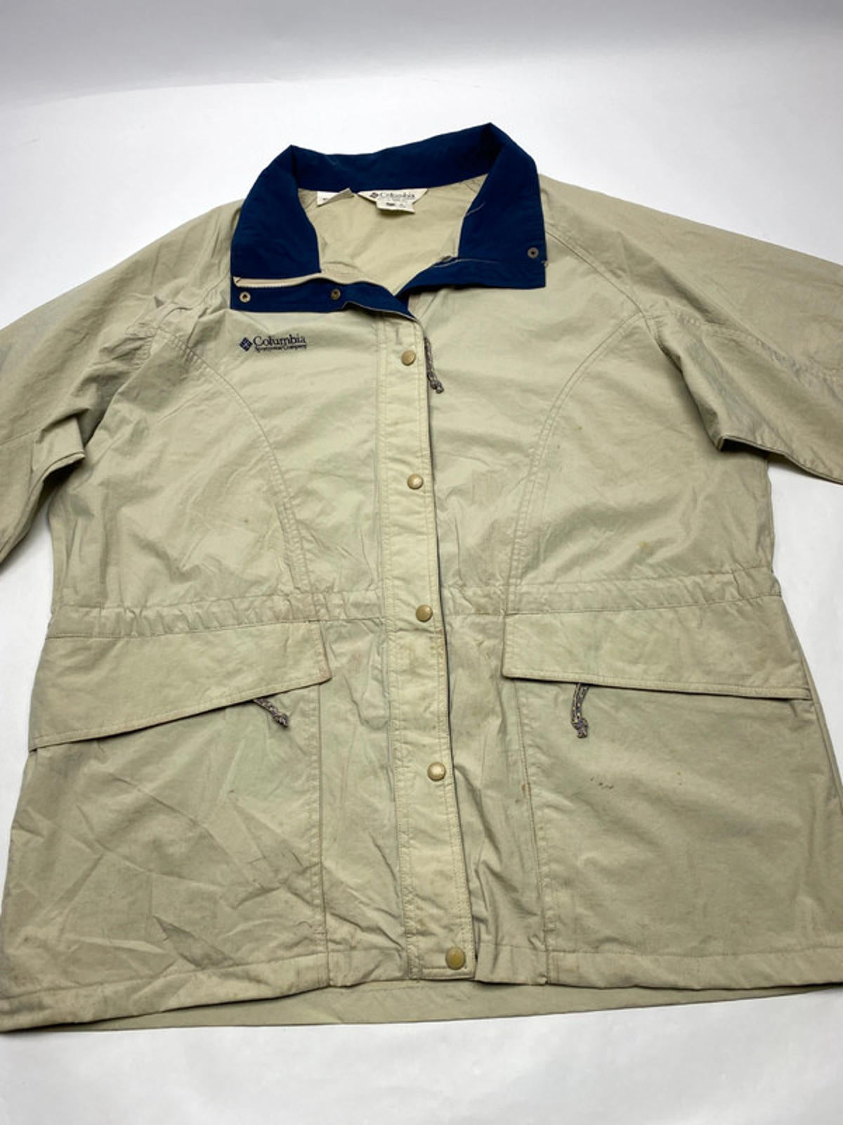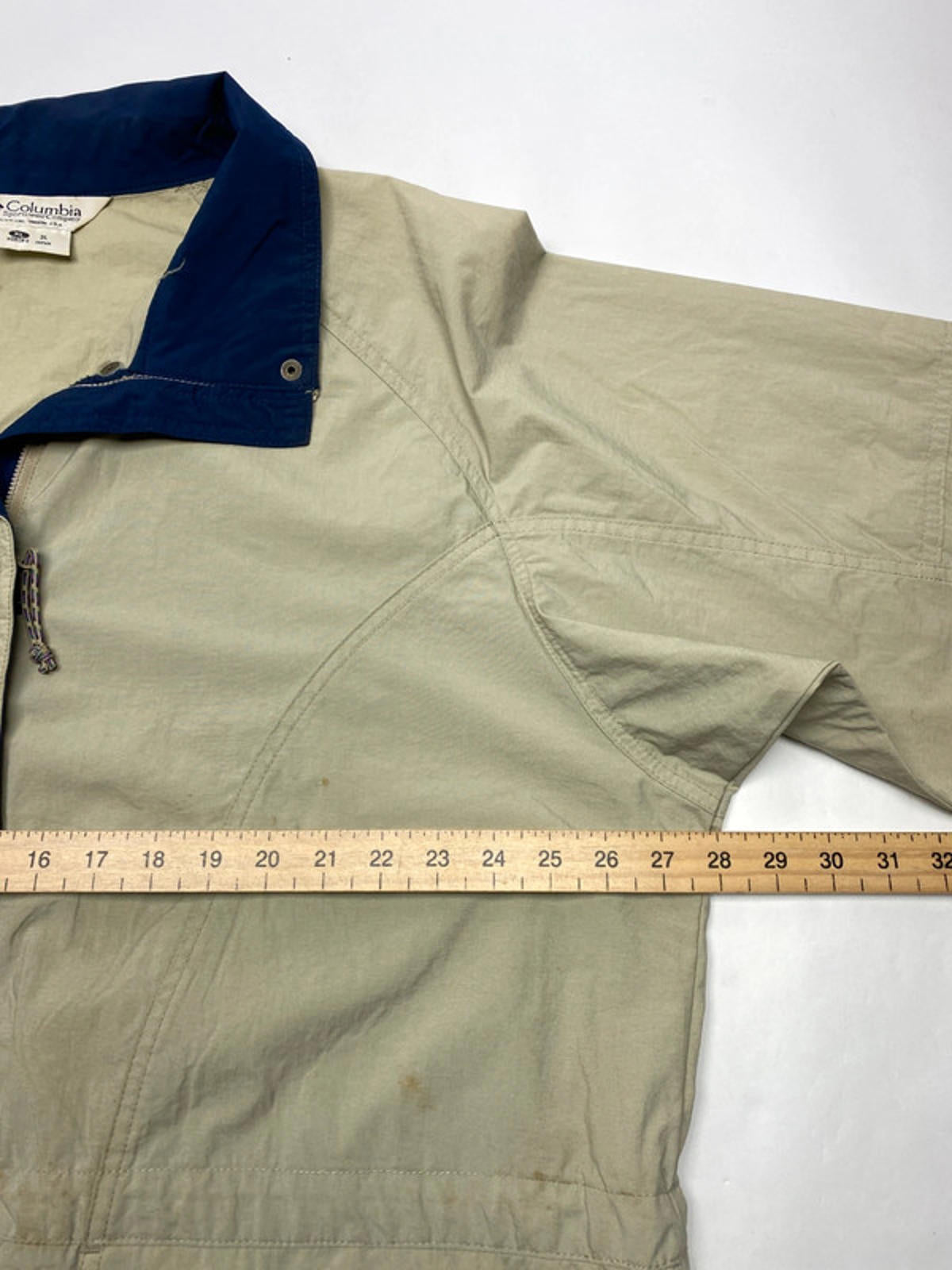 Beige body with navy collar