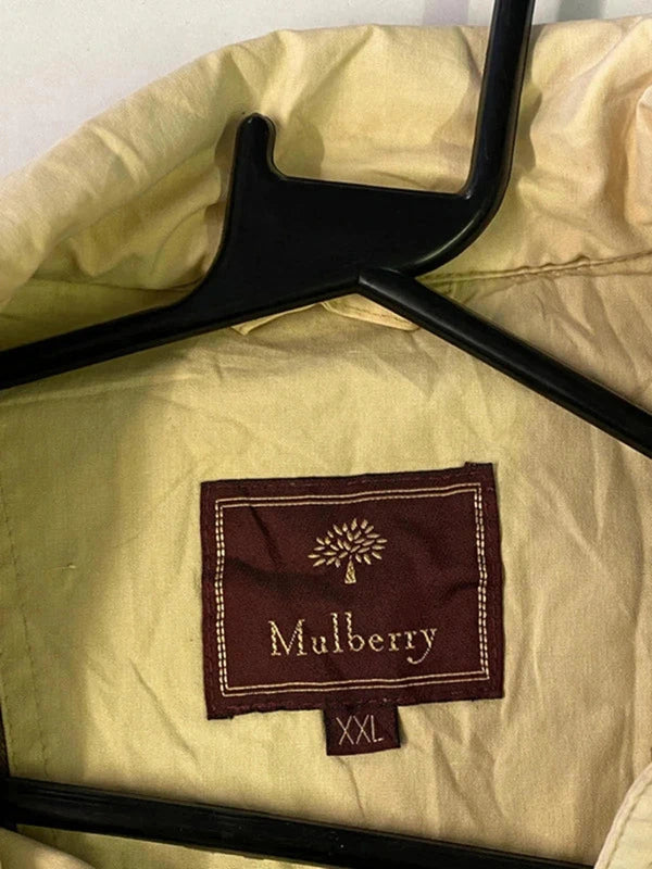 Classic Mulberry lightweight jacket in beige, featuring subtle branding and a timeless design. – Size: Men’s XXL – Full front zip closure – Embroidered Mulberry logo on chest