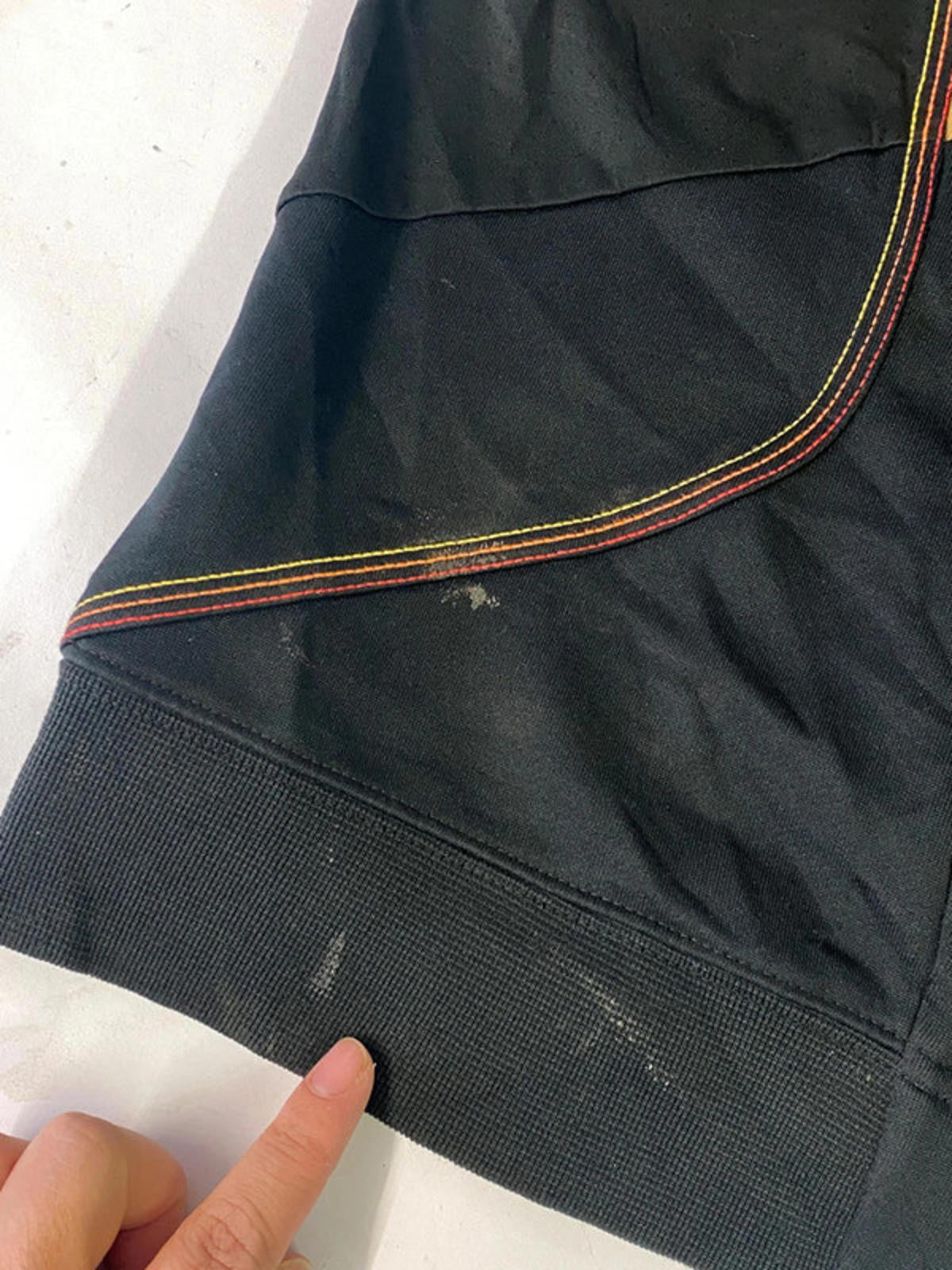 Vintage Nike zip-up hoodie featuring Ronaldinho’s "10R" logo and crest on the chest. Black with orange and brown striped zip pocket details. Size L, made in China. Stylish and sporty with a collectible design. Shows minor signs of wear but still in great condition.