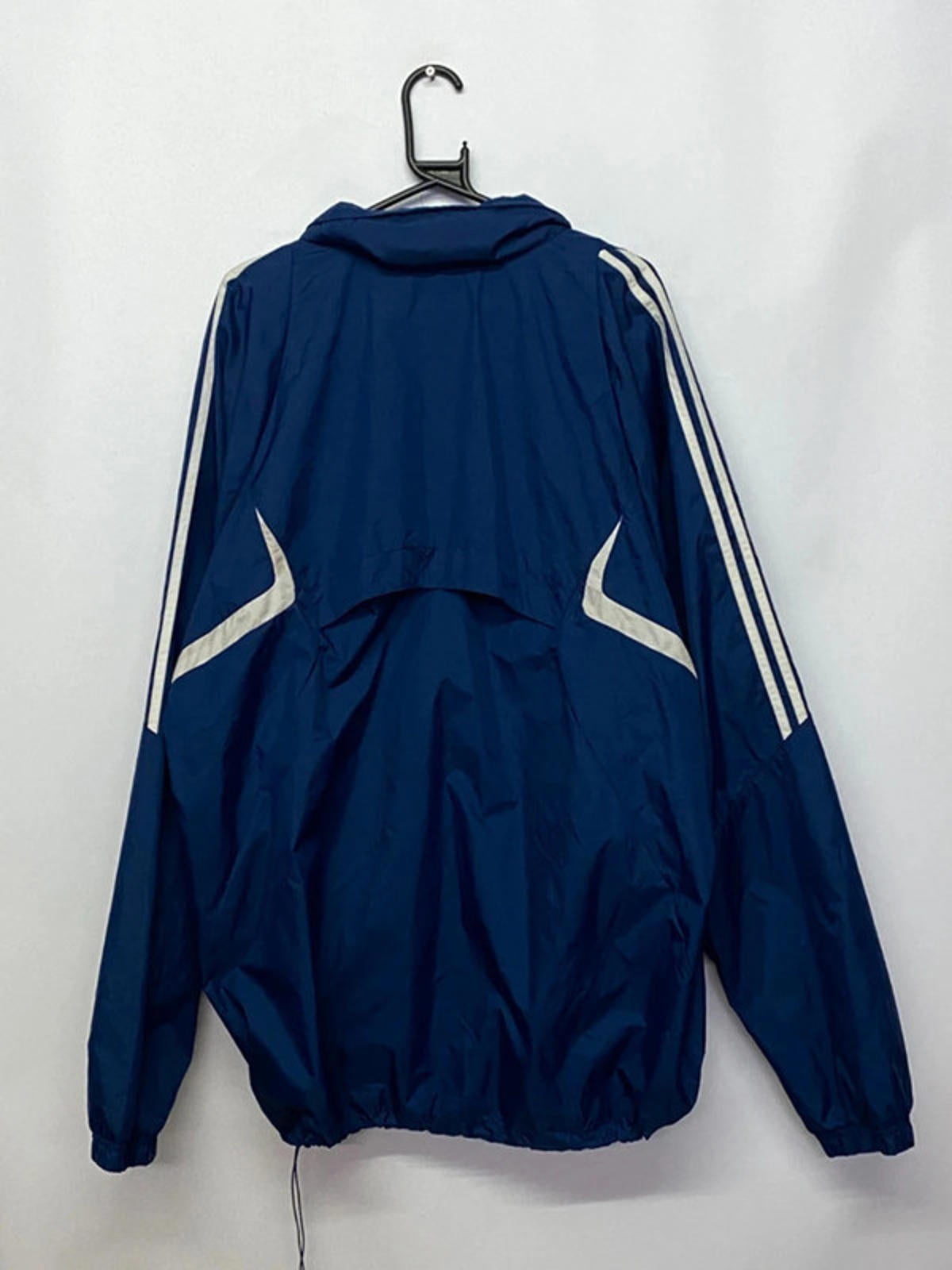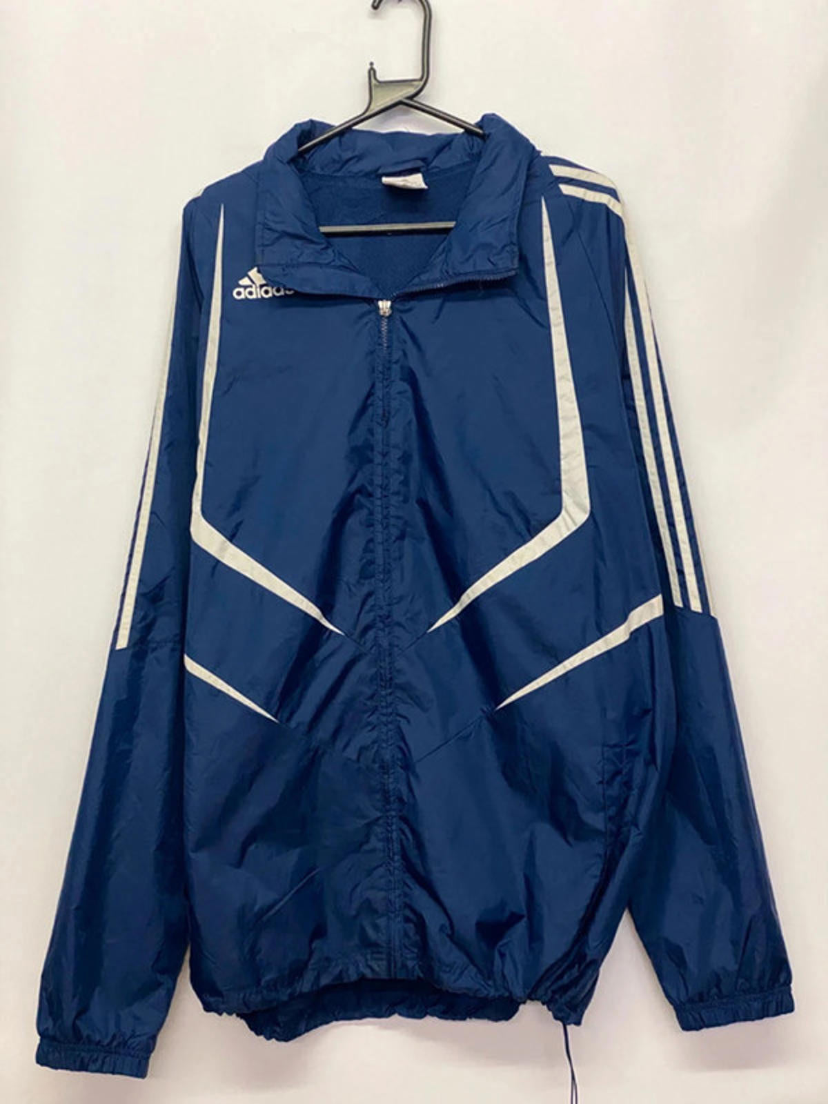 Navy blue with white stripe detailing and classic 3-stripes on the sleeves.