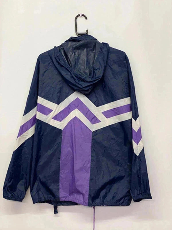 Size: Medium (M) Colour: Navy with purple and white accents Era: Late 80s / Early 90s (Trefoil tag)