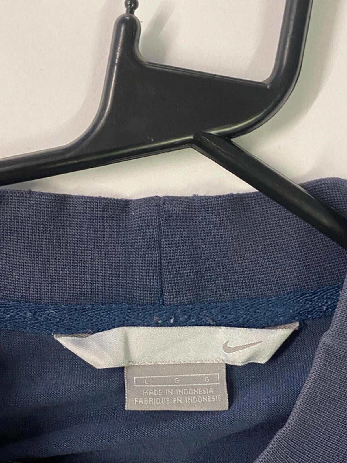 Classic vintage Nike long sleeve sweatshirt in a deep navy blue. Minimalist design with a subtle Swoosh logo on the neck tag. Made in Indonesia. Size L (Large). Soft, comfy fabric – great for layering or casual wear. In good vintage condition with no major flaws.